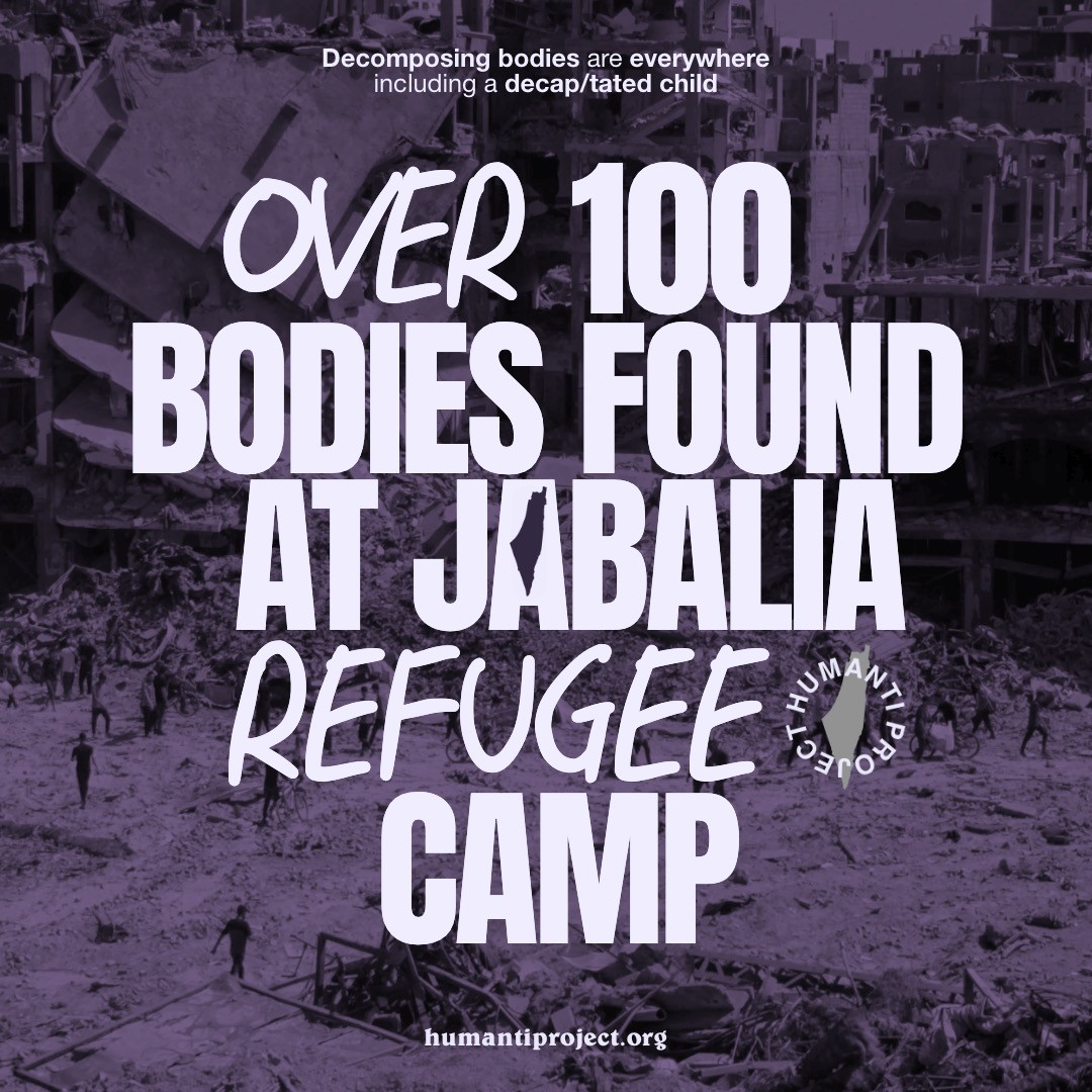 Subject: URGENT: Sanctions Needs Now / URGENT: Mass Deaths at Jabalia Camp / URGENT: 120 bodies discovered at Jabalia refugee camp / Israeli bulldozes cemetery / Israel Obliterates Jabalia Refugee Camp / Immediate Sanctions Needed: Genocidal Actions / Jabalia Refugee Camp Made Uninhabitable / in Response to Genocidal Actions at Jabalia Refugee Camp