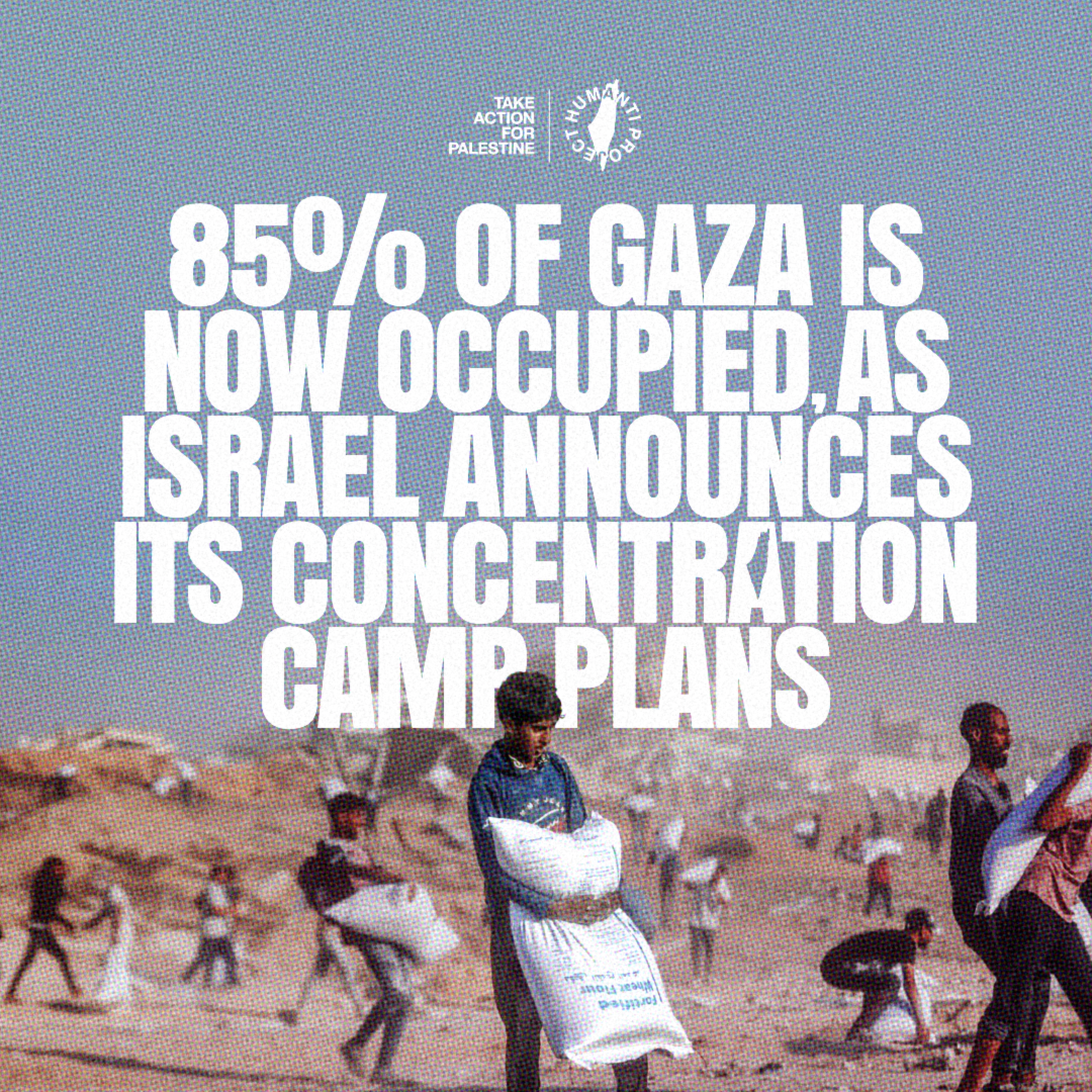 Gaza Humanitarian Foundation aid centres, which have so far resulted in the slaughter of at least 743 people and the injury of 4,891 more have been used to funnel Gaza’s population into an increasingly small area of land. In fact, according to the UNOCHA, 85% of Gaza is now a militarised zone or under forced displacement orders — leaving just 15% of land for 2 million Palestinians.