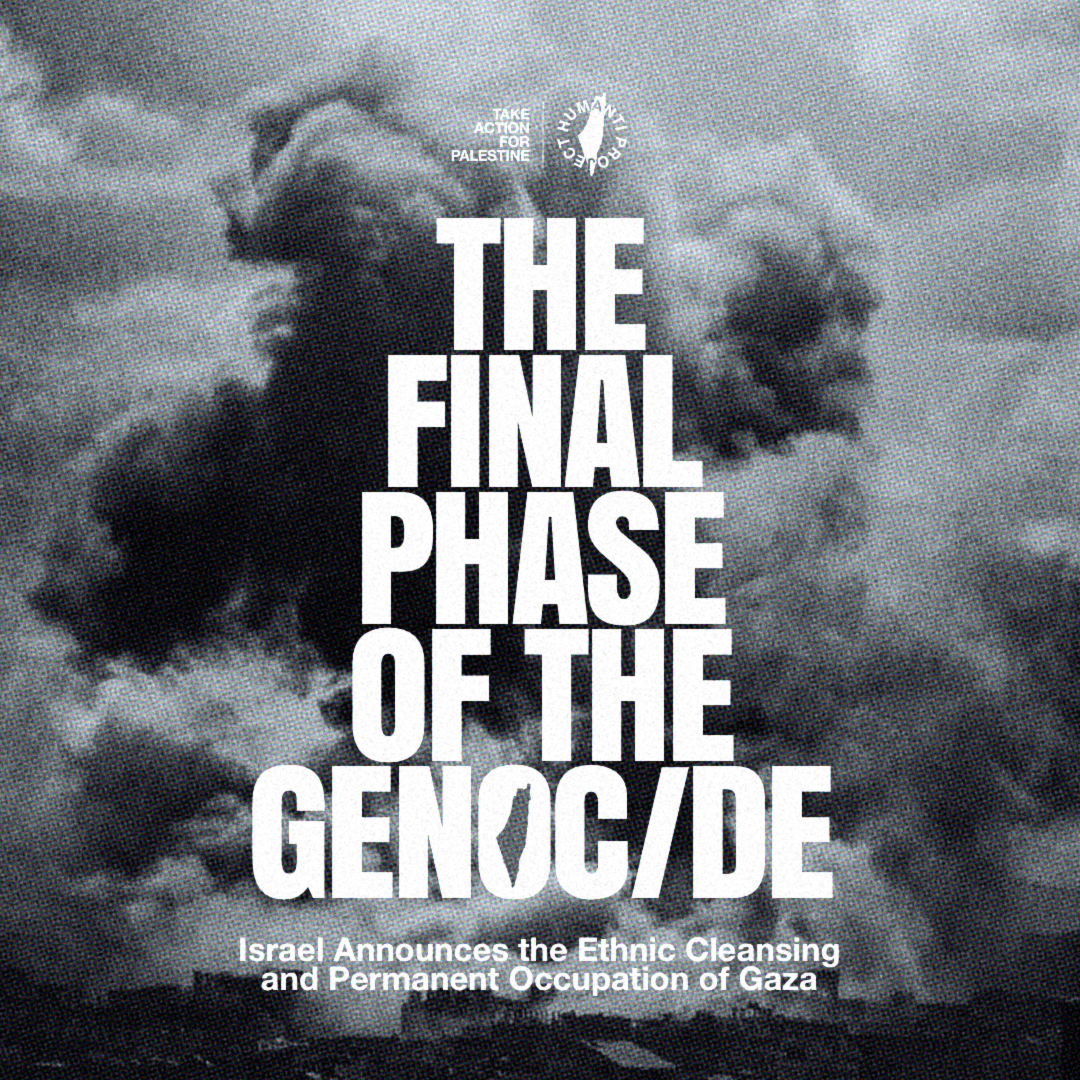 On 5 May, Israel’s security cabinet unanimously approved a new plan to escalate operations in Gaza, including the “conquest” of the territory and the promotion of the “voluntary migration” of its population into Egypt’s Sinai Desert. This is the annexation of Gaza and the ethnic cleansing of its citizens—against the backdrop of a 9-week starvation and aid blockade and continued bombings across the strip.