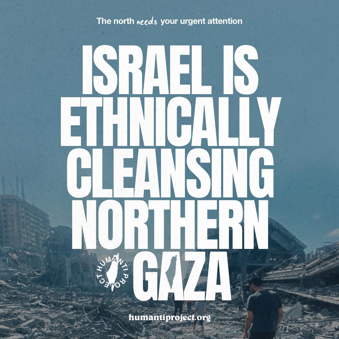Stop Ethnic Cleansing / Stop Ethnic Cleansing in Northern Gaza / Israel is Ethnically Cleansing Northern Gaza / Israel is Turning Northern Gaza into a Military Zone / Hospitals Under Attack: Israeli War Crimes / Sanctions Now: Israel Targeting Fleeing Refugees / The “General’s Plan” to cleanse Gaza is underway