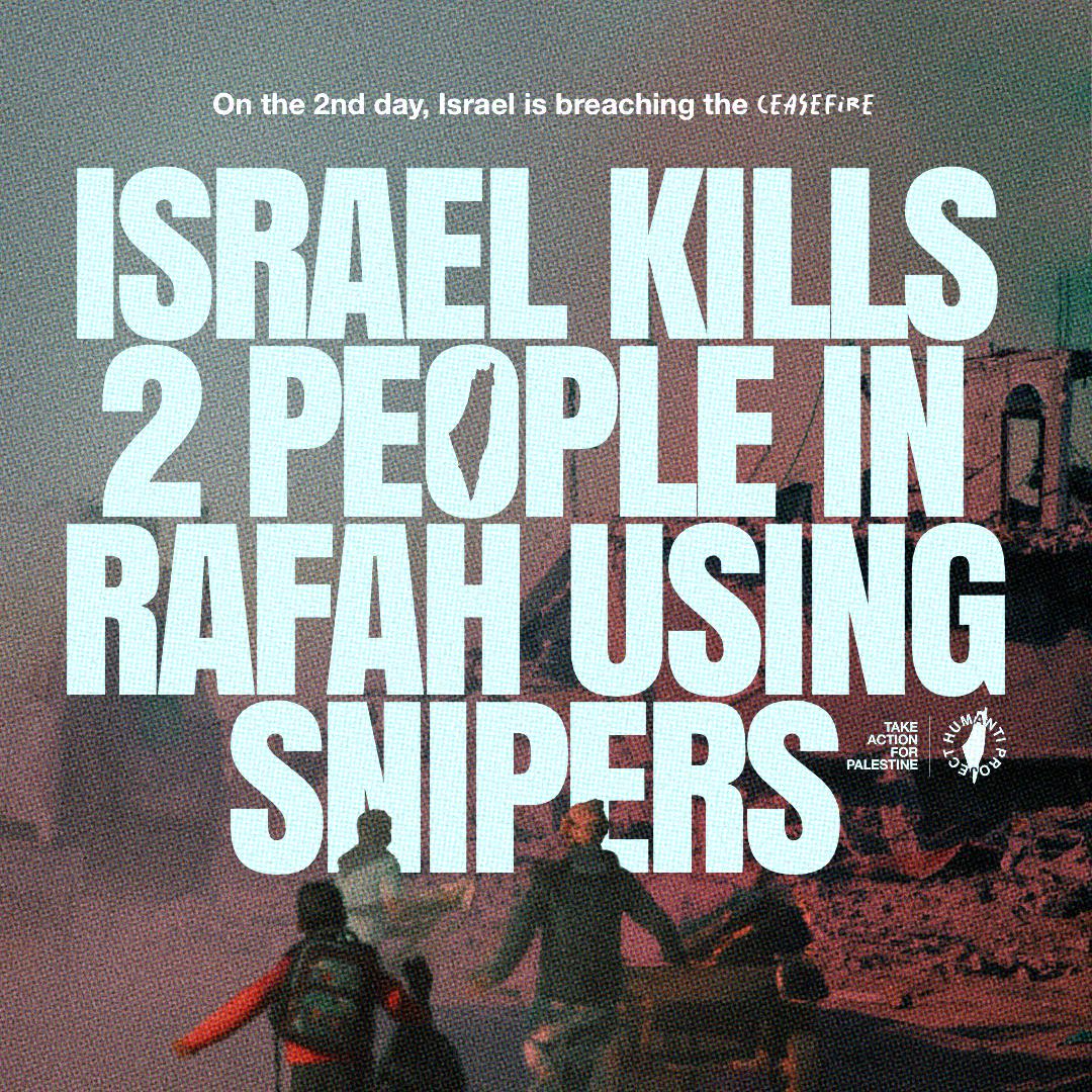 This systematic targeting of civilians continuing into the ceasefire underscores Israel’s blatant disregard for international law and human rights. Netanyahu’s rhetoric describes the ceasefire as a “temporary pause”, warning that attacks on Gaza will continue. Now is not the time to pause accountability for these heinous crimes that continue to be committed with impunity.